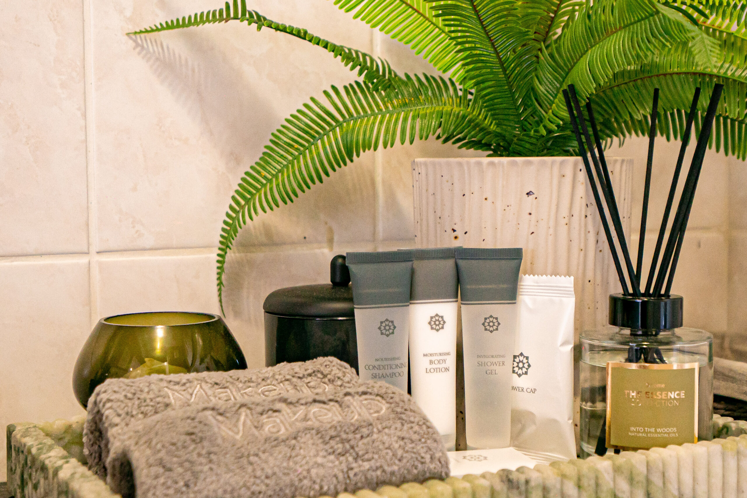 We cater our featured hospitality gestures with glassware, tableware, cutlery, utensils, towels, lotions, soaps, salts, basic toiletries, books & entertainment and much more!